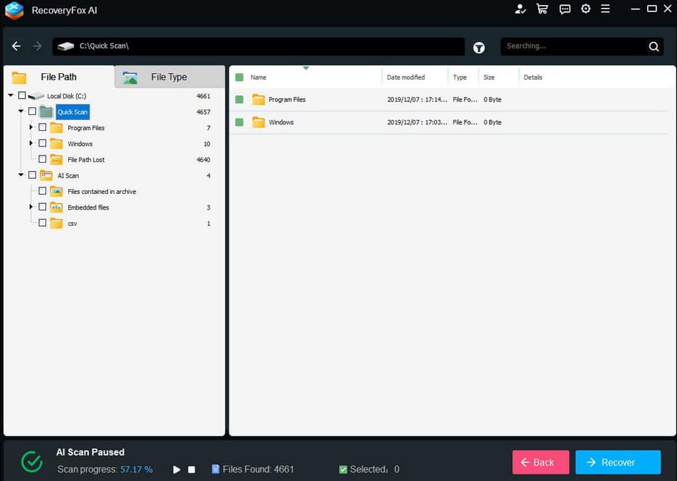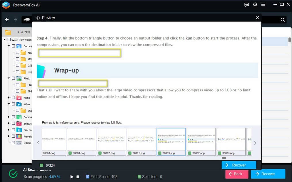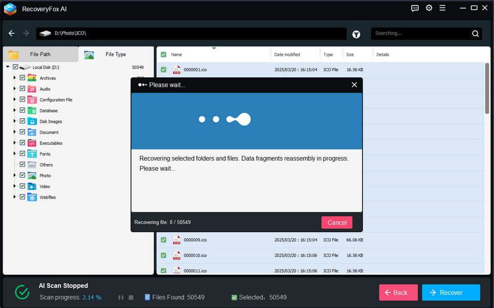 One of its main usage is the restoration of photo recovery, which also comes with excellent performance, as it supports most image formats, including JPEG, PNG, TIFF, BMP and many more used by various camera manufacturers. This wide format support ensures that no matter what the source of the lost photos is, RecoveryFox AI can easily retrieve them.